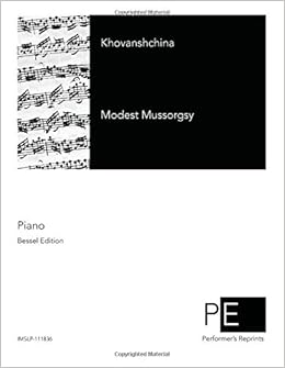 Title: Khovanshchina Composer: Modest Mussorgsky Original Publisher: Bessel Mussorgsky's complete Khovanshchina, as arranged for piano by Chernov and originally published by Bessel. Performer’s Reprints are produced in conjunction with the International Music Score Library Project. These are out of print or historical editions, which we clean, straighten, touch up, and digitally reprint. Due to the age of original documents, you may find occasional blemishes, damage, or skewing of print. While we do extensive cleaning and editing to improve the image quality, some items are not able to be repaired. A portion of each book sold is donated to small performing arts organizations to create jobs for performers and to encourage audience growth.