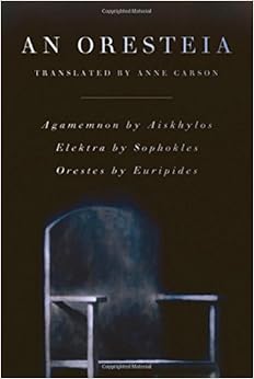 Anne Carson's An Oresteia (Aiskhylos' Agamemnon, Sophokles' Elektra, and Euripides' Orestes) is an ingenious idea that makes for a completely different trilogy than THE (Aiskhylos') Oresteia, and provides a sample of the style and voice of each of the three big Athenian tragedians. The "trilogy" spans events from Klytaimestra's discovery that Agamemnon is finally returning from Troy to the deus ex machina that resolves the outrageous standoff between Orestes, condemned to death for the matricide that avenged his father's death, and Menelaos, who has shrewdly declined to support him in the Argive assembly.Along with Carson's previous translations of four plays by Euripides (Grief Lessons: Four Plays by Euripides (New York Review Books Classics)), these are the most vivid, moving, and even shocking, translations of Greek tragedy I have ever read. Although I cannot read Greek and cannot offer any authoritative comment on the translations as such, my impression from studying other translations and their scholarly notes is that Carson's achievement in English is not at the expense of the Greek; indeed, far from it. Her own introductions to the plays are also marvels of insight and impact.Carson's rendering here of the extended exchange between Kassandra and the Chorus in Agamemnon is as hypnotic and simply visceral as any I know. The text is set on the page in striking arrangements (which I cannot reproduce in the review form) befitting the chaos of Kassandra's visions.